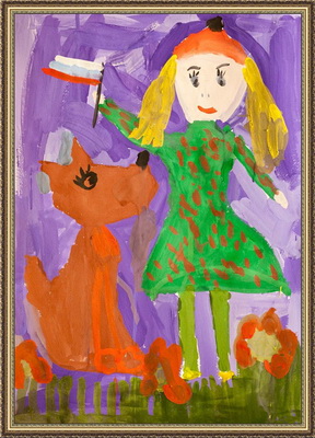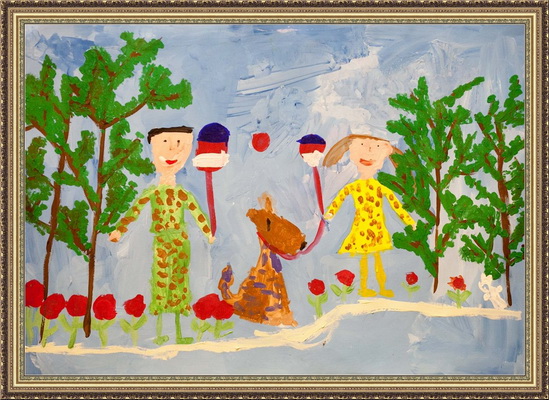 Третье место -Мы с папой и Шариком гуляем Жавнова Софья, педагог Султанова Зарема Ашимжановна. Детский сад №300 "Планета детства", Красноярский край , г. Красноярск