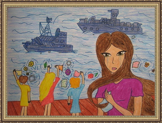 Второе место -Выступаем на охрану водных рубежей страны Воробьева Анастасия, педагог Столярчук Елена Николаевна. Средняя общеобразовательная школа №32 , Красноярский край , г. Норильск