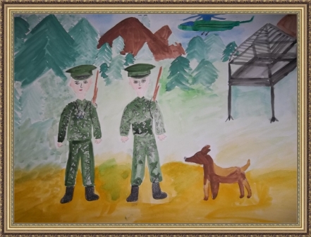 Второе место -Мы на заставе! Фармаковская Альбина, педагог Рябова Татьяна Александровна. Средняя общеобразовательная школа №63 , Москва ,