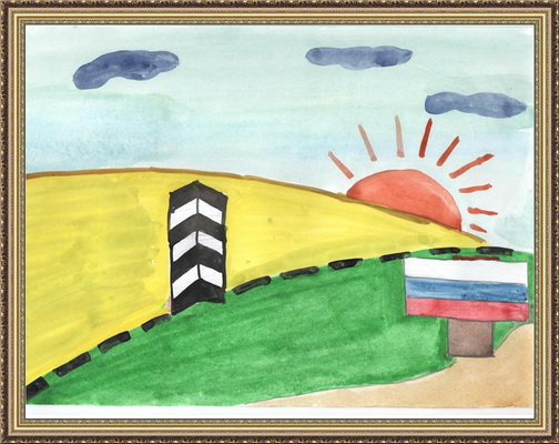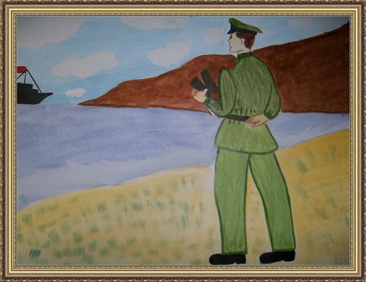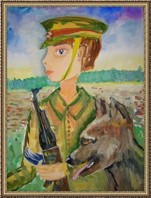 Третье место -На охране границы Шарпова Наталья, педагог Заморенова Марина Николаевна. Центр детского творчества "Алые паруса", Пермский край , с. Бабка
