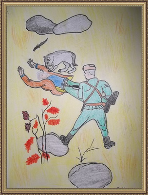 Второе место -Охрана границы Буленков Никита, педагог Лисакович Елена Петровна. Средняя общеобразовательная школа №7 , Сахалинская область , г. Поронайск