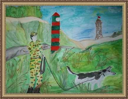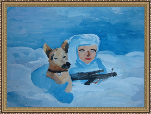 Второе место -Мы с Джульбарсом на границе Шалыгина Саша, педагог Харитонова Эльмира Эмирусейновна. Центр внешкольной работы , Владимирская область , г. Камешково