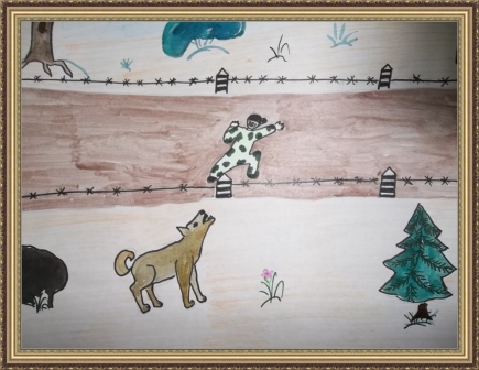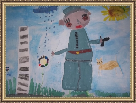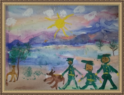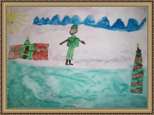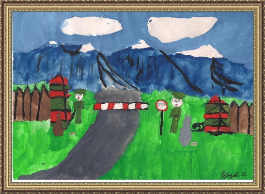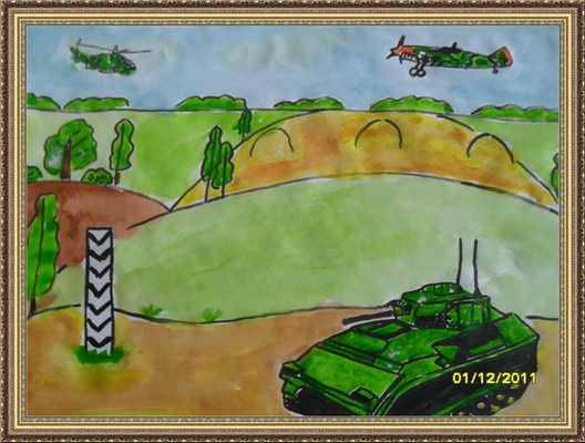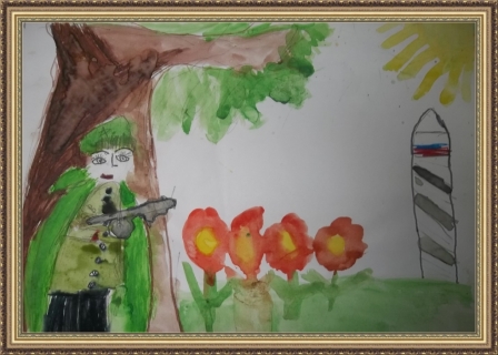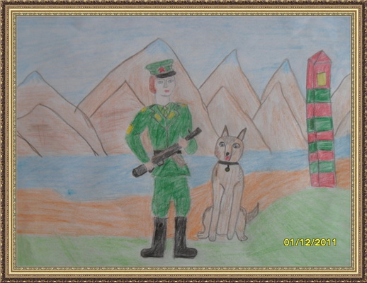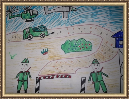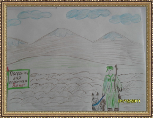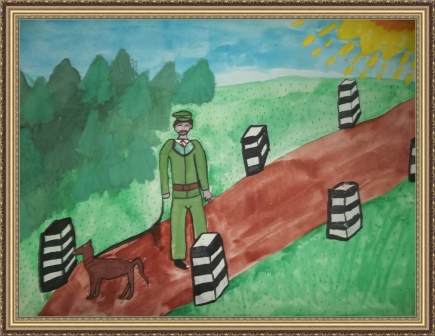 Второе место -"На страже" Линейцева Олеся, педагог Евстифеева Валентина Анатольевна. Средняя общеобразовательная школа , Республика Бурятия , п. Саган-Нур
