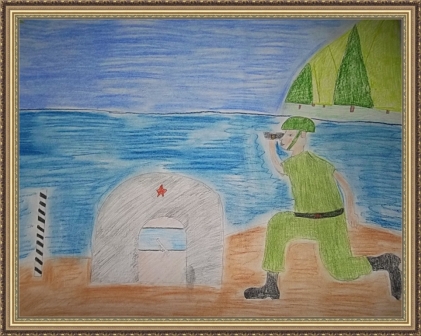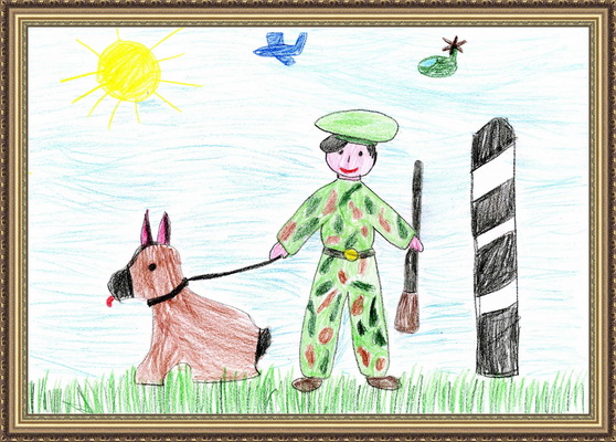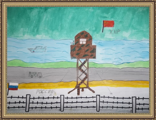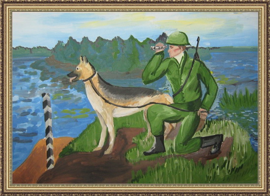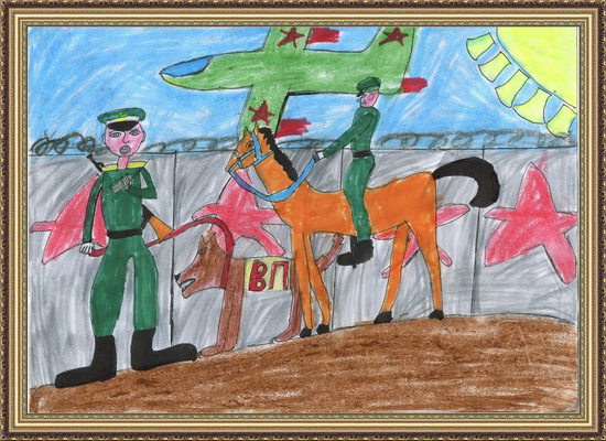 Третье место -Влюбую погоду на страже границы! Бойцова Юлия, педагог Шарафутдинова Гюзель Тахировна. Детская художественная школа №2 , Республика Татарстан , г. Набережные Челны