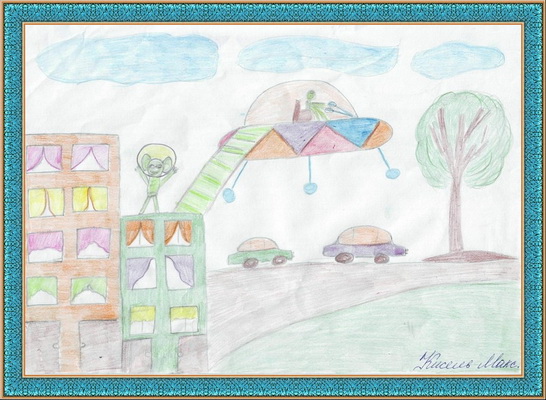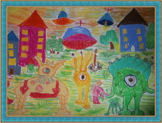 Третье место -Инопланетяне в нашем городе Варсеев Саша, педагог Соловьева Наталья Петровна. Детская школа искусств, г. Почеп