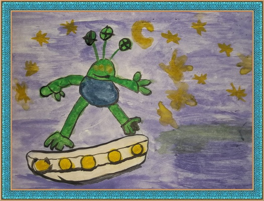 Второе место -Инопланетный дозор Обухова Ксения, педагог Каминская Галина Георгиевна. Детская школа искусств "Ритм", п. Мирный