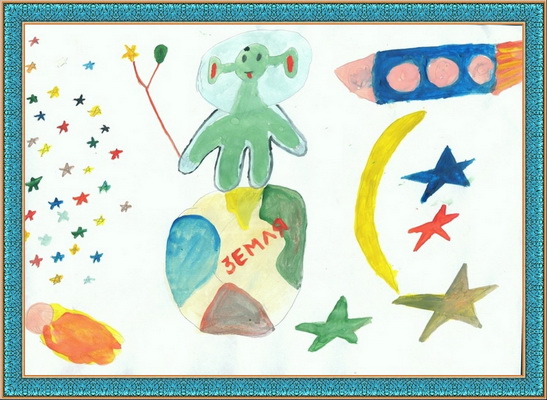 Третье место -Привет земляне Хван Виктория, педагог Бердникова Елена Геннадьевна. Детская художественная школа, г. Вятские Поляны