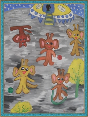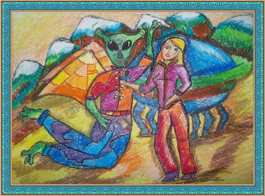 Третье место -Встреча инопланетян с российскими космонавтами Лукин Илья, педагог Тимохина Надежда Валентиновна. Детская школа искусств, п. Таврическое