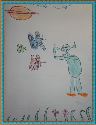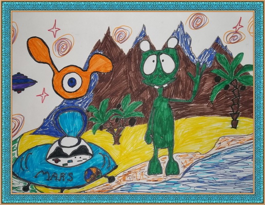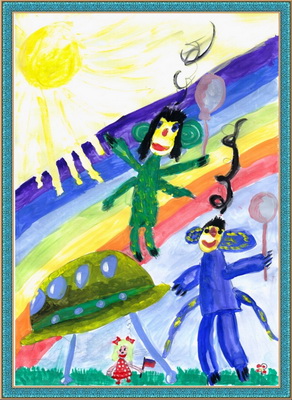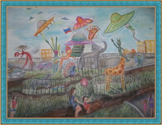 Третье место -Дружба с инопланетянами Хренникова Ангелина, педагог Мельникова Елена Алексеевна. Художественная школа, г. Оренбург