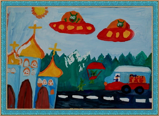 Второе место -Инопланетяне в Соколовке Котова Наталья, педагог Хорошавина Наталья Константиновна. Детская художественная школа им. Н.В.Овечкина, г. Новошахтинск