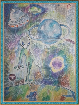 Третье место -Плановое посещение Земли Зиянгирова Ева, педагог Гулина Ирина Николаевна. Детская художественная школа, г. Салават