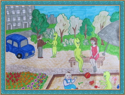 Третье место -Пришельцы Туяна Балданова, педагог Хартаева Анжела Андреевна. Детский сад "Наран-Сэсэг", с. Кырен