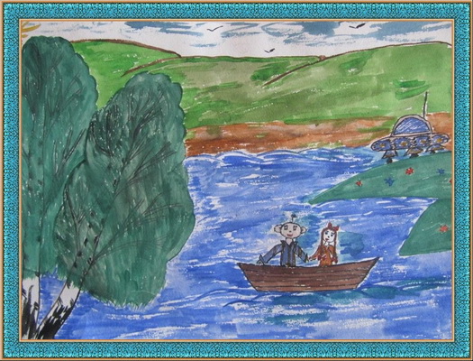 Второе место -На лодочке Малышева Наташа, педагог Беляевская Татьяна Витальевна. Средняя общеобразовательная школа, п. Саган-Нур