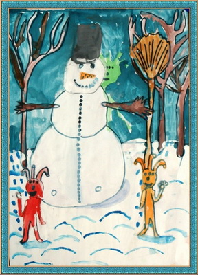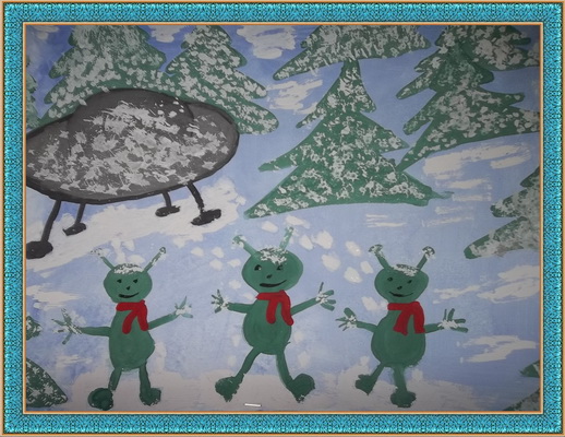 Третье место -Инопланетяне лепят снеговика Чернова Елизавета, педагог Редванова Людмила Александровна. Начальная общеобразовательная школа №19, Астраханская область, г. Астрахань