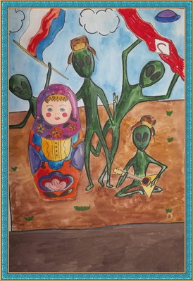 Второе место -Встреча инопланетного гостя Нестеренко Екатерина, педагог Безрукова Ирина Валерьевна. Детская художественная школа №4 им. П.И.Котова, Астраханская область, г. Ахтубинск