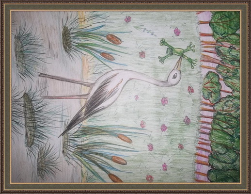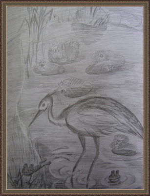 Третье место -Цапля - охотница за лягушками Кипоть Витя, педагог Казакова Ирина Георгиевна. Детско-юношеский центр, Иркутская область, г.Усть-Кутское