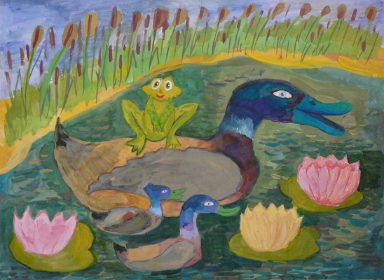 Победитель -"Утка с утятами на пруду", Лебедев Даниил, педагог Шаура Наталья Федоровна. Детский сад №68, Иркутская область, г.Братск