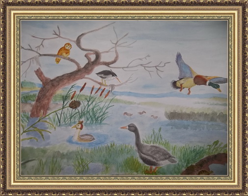 Третье место -"Гости в болотном царстве", Балыбина Дарья, педагог Верёвкина Надежда Викторовна. Средняя общеобразовательная школа №7, Кемеровская область, г.Мариинск