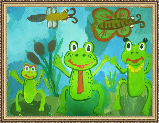 Второе место -"Лягушки на прогулке", Матросова Лейла, педагог Чашина Юлия Андреевна, Чулкова Ирина Геннадьевна. Дворец творчества детей и молодежи, Кемеровская область, г.Белово