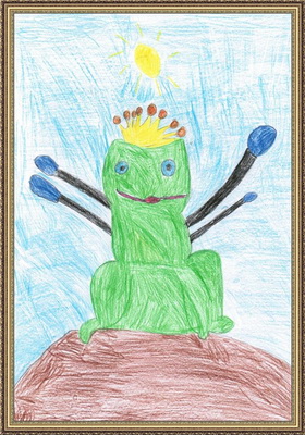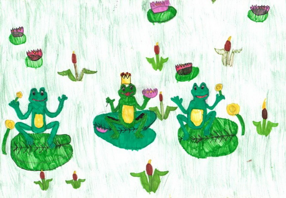 Третье место -Лягушка-зеленушка прекрасная квакушка! Сапегина Софья, педагог Мухаметдинова Фания Ракиповна. Детская художественная школа, Кировская область, г.Вятские Поляны
