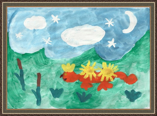 Третье место -"Вечер на болоте", Родикова Виктория, педагог Султанова Рамиля Фаритовна. Детский сад №54, Красноярский край, г.Красноярск