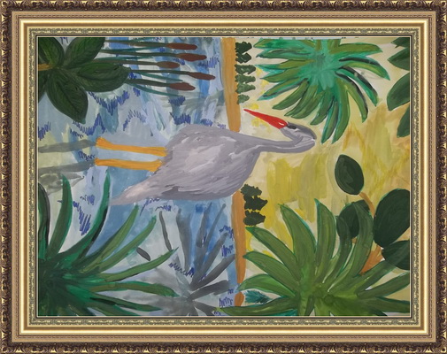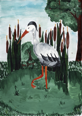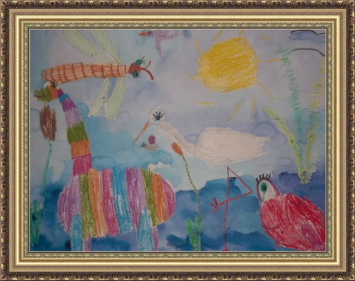 Третье место -"О цапля! Она благородная птица!", Линд Себастьян, педагог Карпухина Светлана Владиславовна. Развивающий детский центр "Озорник", Московская область, г.Ступино