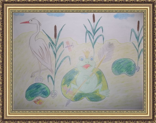 Третье место -"Лягушка и цапля", Ломаева Александра, педагог Зазулина Маргарита Гариковна. Детский сад №1 "Родник", Московская область, г.Клин