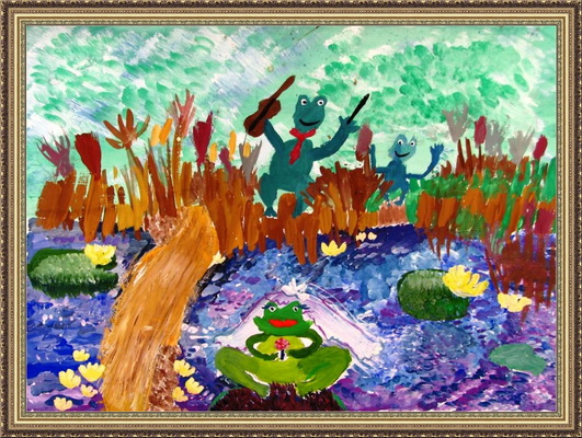 Победитель -"На болоте лягушки поют", Коновалова Кристина, педагог Панина И.Н.. Детская художественная школа "им. М.И. Черткова", Ростовская область, п.Чертково