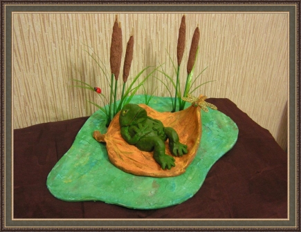 Второе место -Лягушка в болоте Столяров Артем, педагог Столярова Оксана Иванавна. Средняя общеобразовательная школа №5 "структурное подразделение «Центр детского творчества «Умелец»", г. Новокуйбышевск