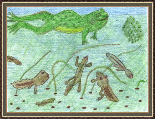Третье место -От икринки до лягушки Дарья Григорьева, педагог Клаковская Юлия Васильевна. Детский дом, с.Чердаты