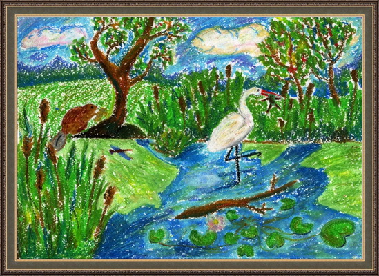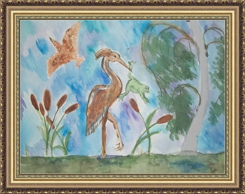 Третье место -Цапля на болоте Шорникова Елизавета, педагог Шорникова Галина Владимировна. Детский сад №30 "Солнышко,посещает изостудию", Владимирская область, г.Вязники