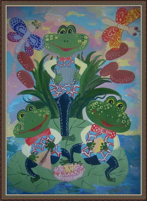 Третье место -Весёлые лягушки Каримова Диана, педагог Татаурова Татьяна Александровна. Детская художественная школа, Республика Башкортостан, г.Салават