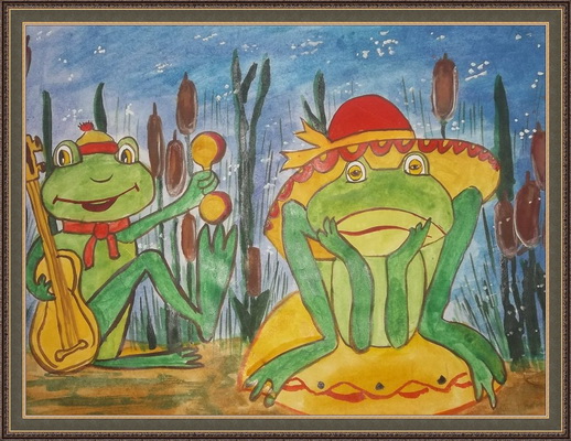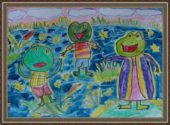 Второе место -Лягушки в болоте Галиев Тимур, педагог Андреева Татьяна Алексеевна. Детская художественная школа, Республика Башкортостан, г.Салават