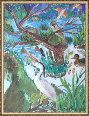 Победитель -Утки на болоте Пономарёва Анна, педагог Андреева Татьяна Алексеевна. Детская художественная школа, Республика Башкортостан, г.Салават