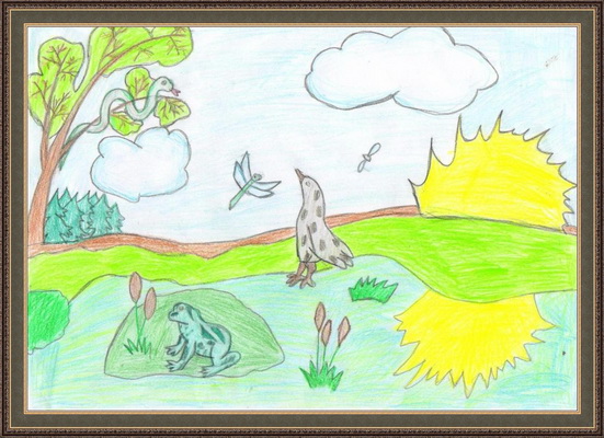 Третье место -Летним деньком на болоте Глухова Анастасия, педагог Остапчук Ирина Валентиновна. Средняя общеобразовательная школа, Республика Коми, п.Чернореченский