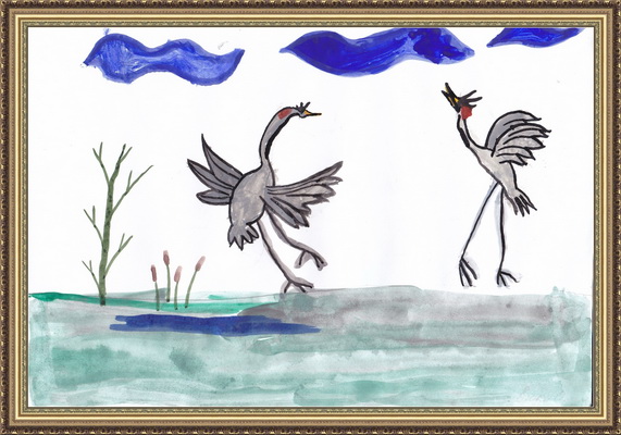 Второе место -Журавли Пшенничникова Екатерина, педагог Ягнышева Татьяна Илинична. Гимназия "Эврика", Республика Саха (Якутия), г.Олёкминск