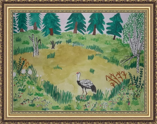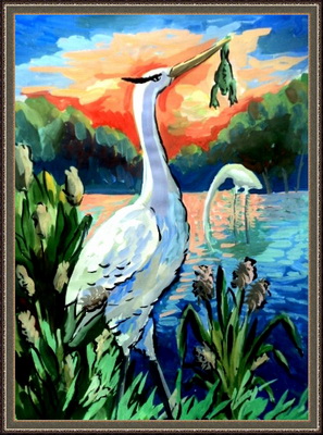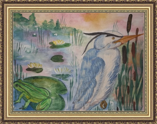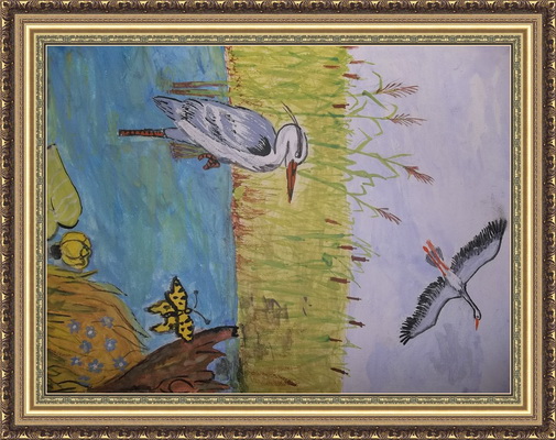 Третье место -Цапля на болоте Молчанова Ксения, педагог Крутяков Алексей Евгеньевич. Детская художественная школа №4 "им. П.И.Котова филиал п. Верхний Баскунчак", Астраханская область, п.Верхний Баскунчак