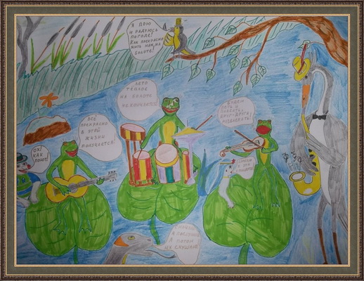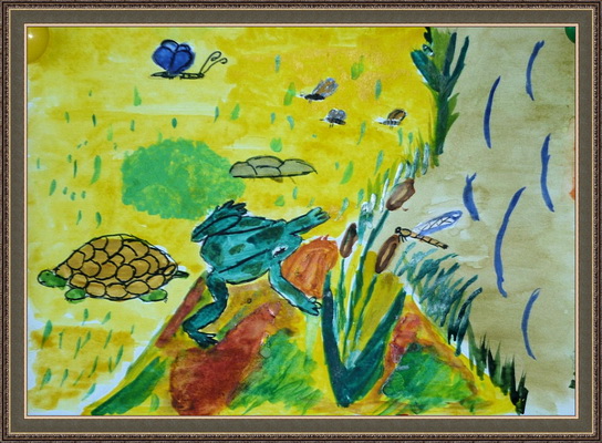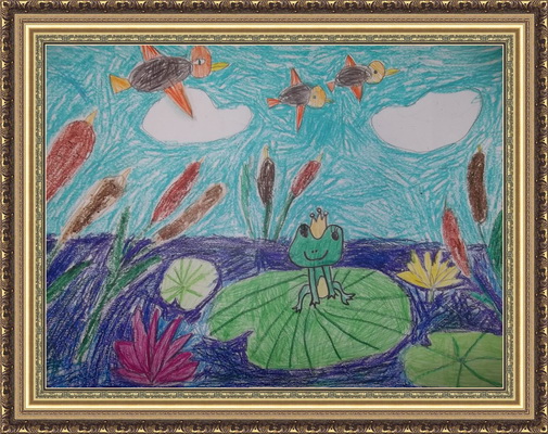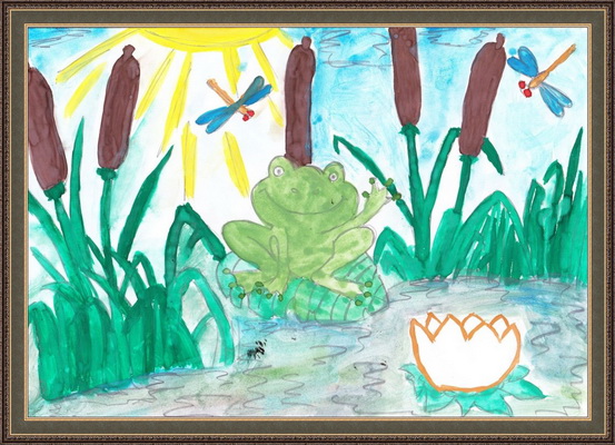 Третье место -Лягушка на болоте Понюкова Эллина, педагог Овчинникова Алевтина Викторовна. Средняя общеобразовательная школа №33 "им. Н.Мордовиной", Астраханская область, г.Астрахань