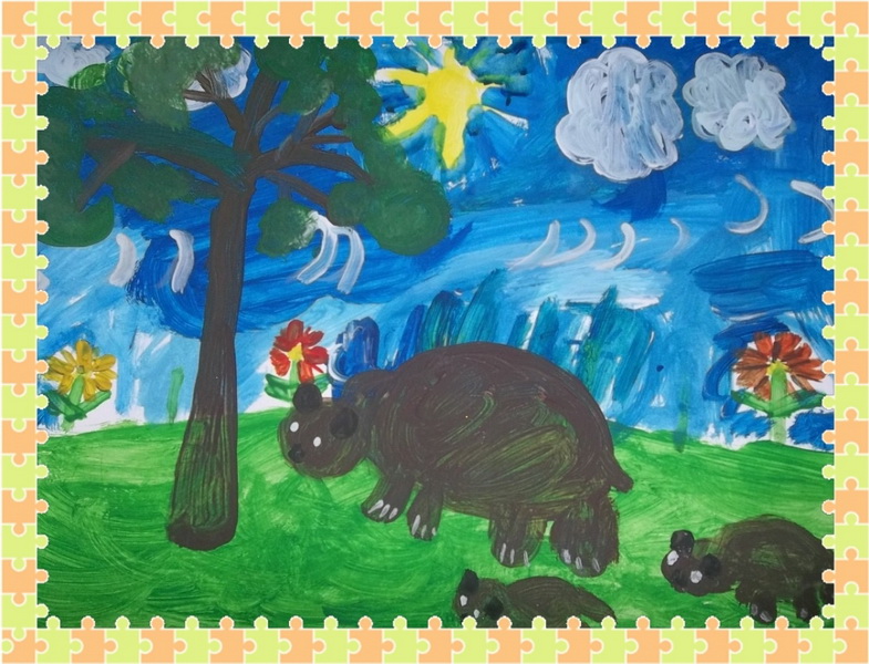 Второе место -С медвежатами на прогулке Горохова Катя, педагог Зыкова Марина Анатольевна, Детский сад №52, Красноярский край, г. Красноярск