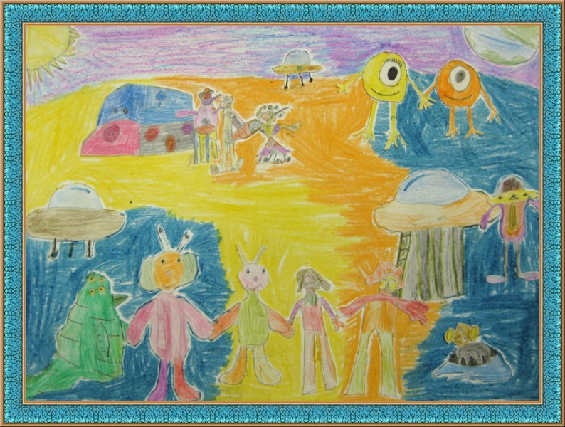 Третье место -Встреча в космосе Спасенская Настя, Детский сад №1640