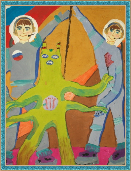 Второе место- "Пусть всегда дружат россияне и инопланетяне" , Мартынов Владислав, п. Мокшан, Школа искусств