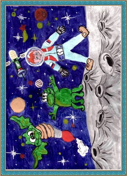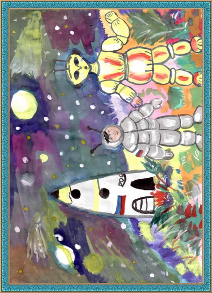 Второе место- "Вместе весело шагать по космическим просторам" , Абуткова Полина, р-н Нижнеломовский с. Прянзерки, Основная общеобразовательная школа