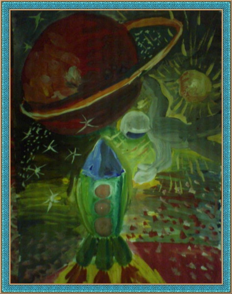 Второе место- "Космический полёт к другой планете" , Каменских Лиза, р-н Березовский с. Березовка, Детская школа искусств
