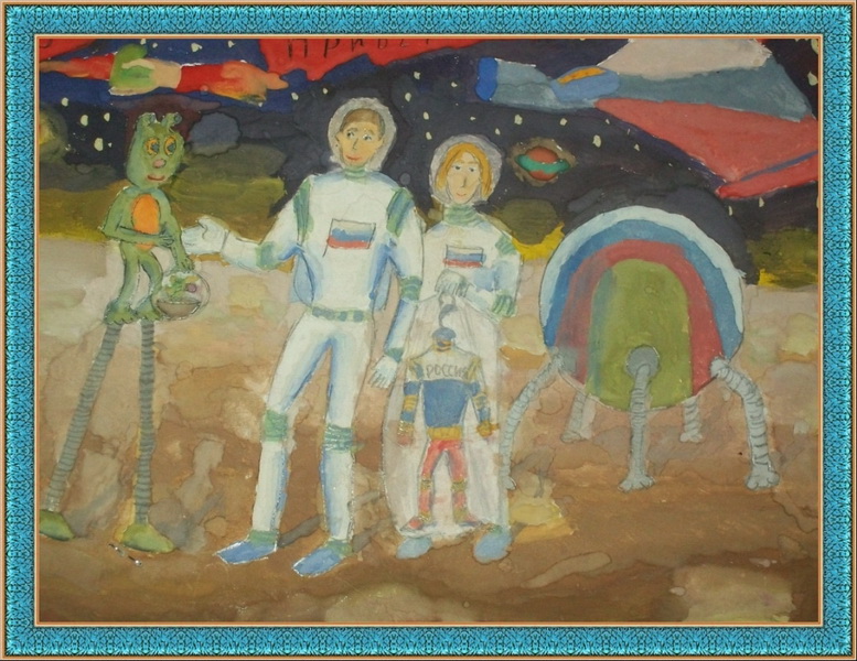Третье место - "Русские космонавты берут на воспитание маленького инопланетянина" , Бунин Дмитрий, Пензенская область, п. Мокшан, Средняя общеобразовательная школа №2