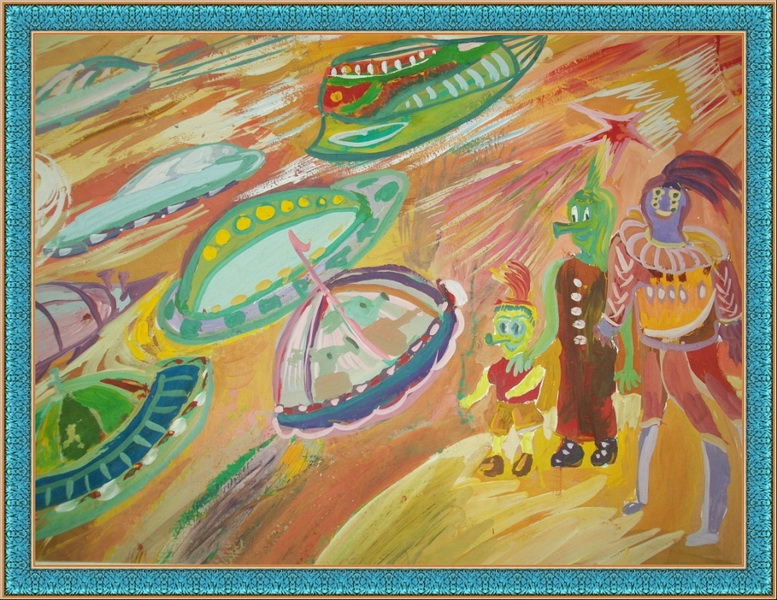 Второе место - Друзья с далекой планеты , Февралева Ангелина, г. Новошахтинск, Детская художественная школа им. Н.В.Овечкина