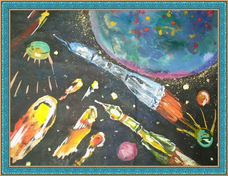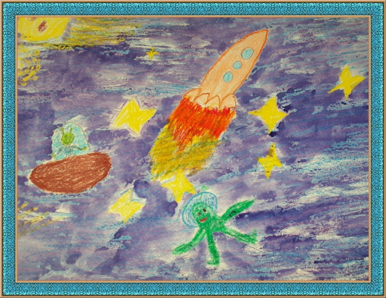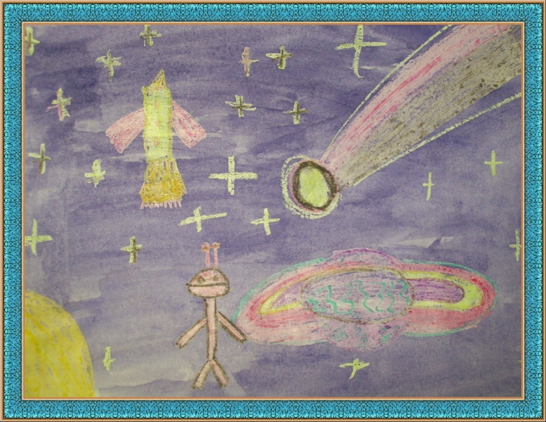 Третье место - "В космосе" , Поликевич Эльвира, Республика Коми, г. Печора, Дом детского творчества