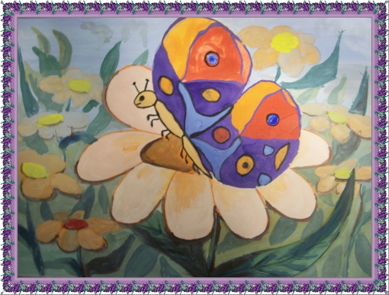 Второе место -Бабочки на цветах Уткина Анастасия, Детская школа искусств, с. Глинищево