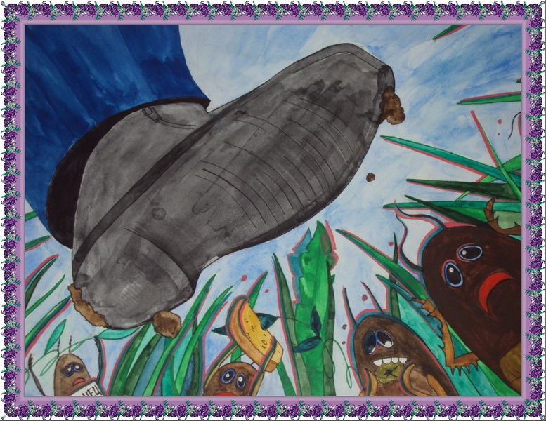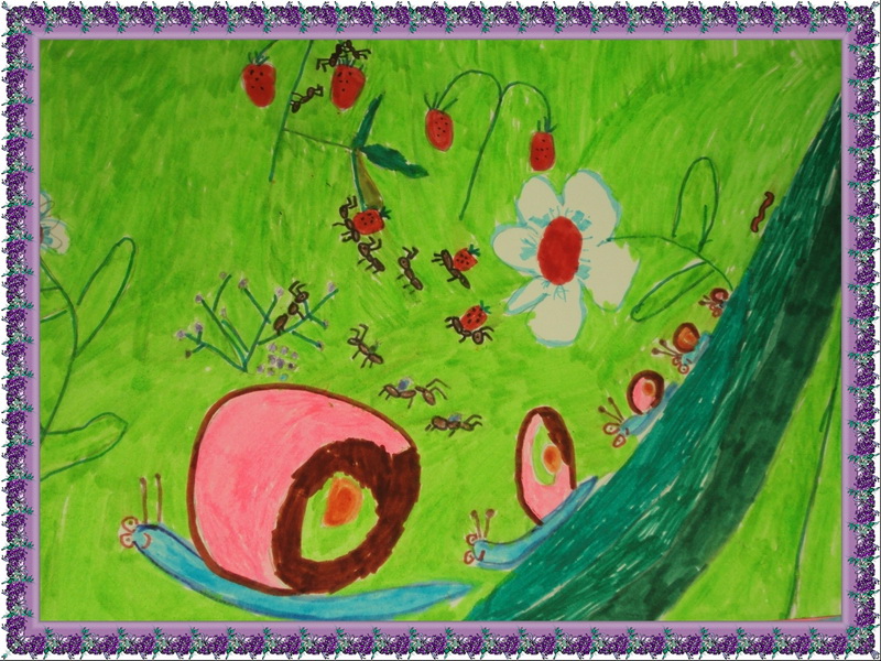 Второе место -Встреча жучка с улитками Котова Алина, Центр детского творчества, п. Бачатский