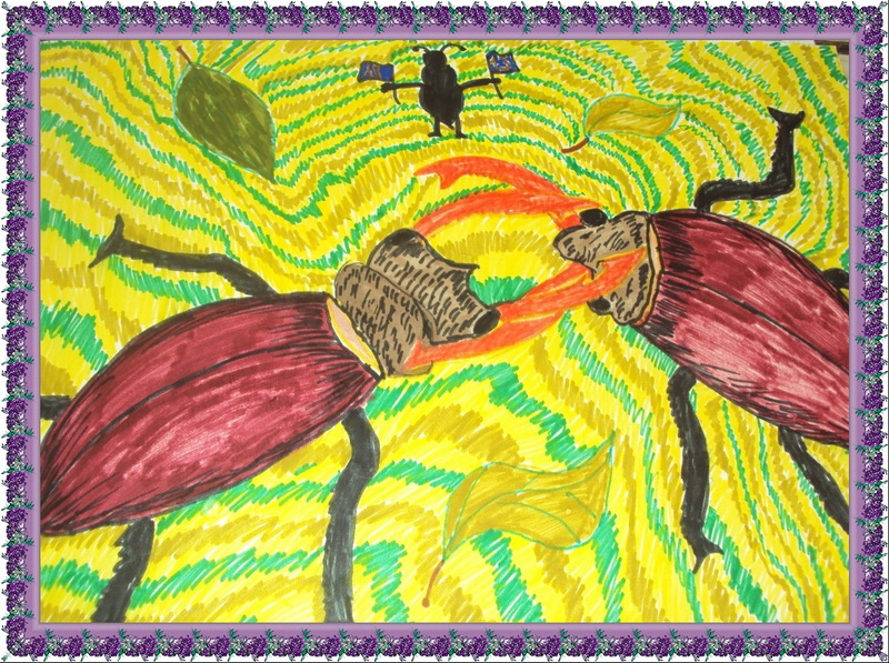 Второе место -Сражающиеся жуки-олени Тлешов Роман, Центр детского творчества, Амурская область, г. Тында
