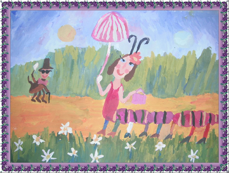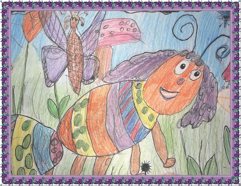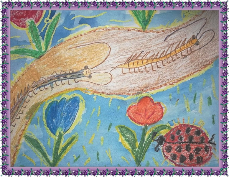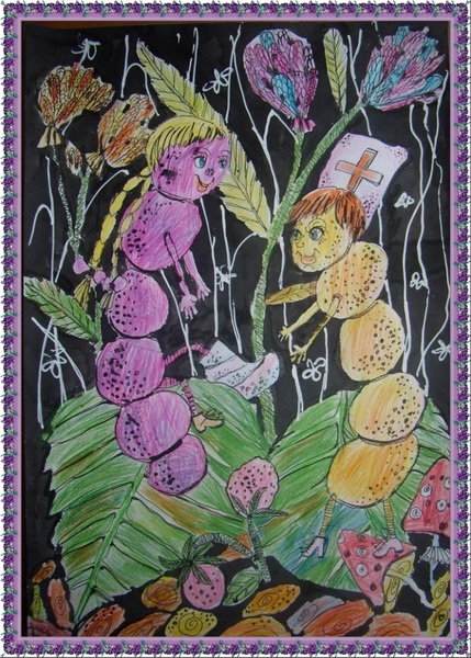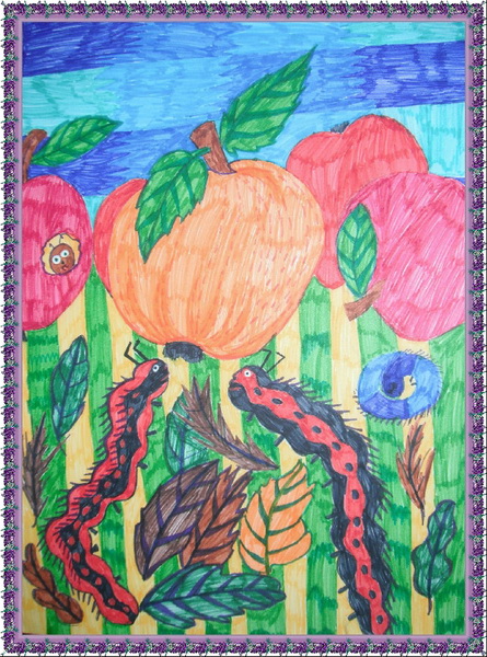 Третье место -Гусенички на лужайке Авдеенко Аня, Детская школа искусств №2, Самарская область, п. Яблоневый овраг